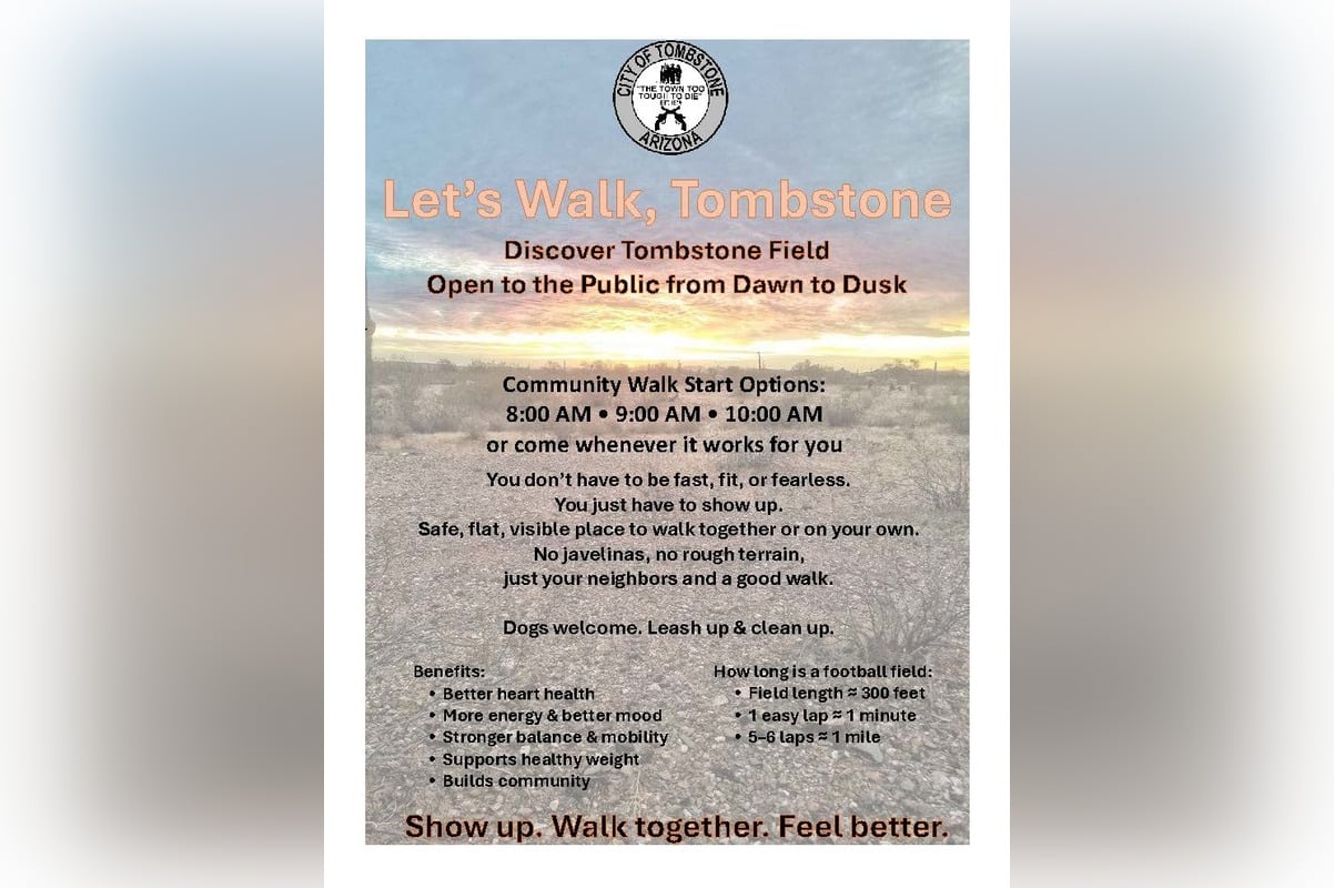 Tombstone has introduced a new initiative titled “Let’s Walk, Tombstone,” aimed at promoting community health and encouraging residents to engage in regular physical activity. This program is set to take place at Discover Tombstone Field, operating from dusk until dawn, and is designed to be accessible for individuals of all fitness levels.
