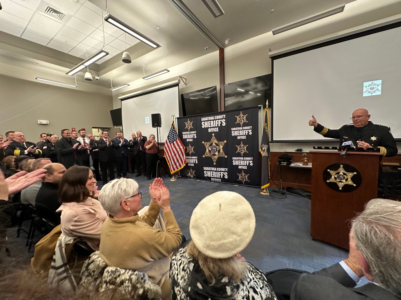 In his final address to the crowd as sheriff, Zurlo shared his emotions, stating, “Today marks the end of an incredible 12-year journey as the Sheriff of Saratoga County.” He expressed pride in his team’s accomplishments and confidence in Brown’s ability to lead moving forward. “I could not think of a better person to succeed me,” he added.