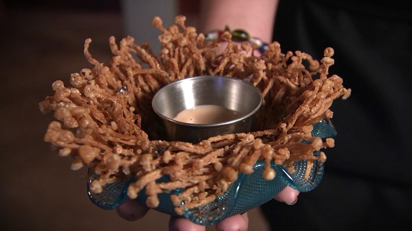Manong, which translates to “elder brother” in the Filipino Ilocano language, offers a menu that reflects Anies’ biracial heritage. The restaurant features American favorites with a Filipino twist, including chicken skewers grilled with banana ketchup barbecue sauce and creamy pasta made with American cheese and coconut milk Alfredo sauce. A standout dish, The Bloom Shroom, is Anies’ creative version of the classic Bloomin’ Onion, made with enoki mushrooms.