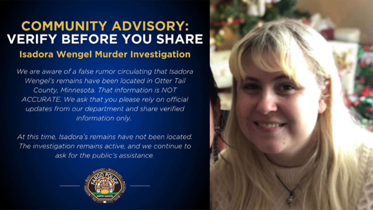 UPDATE: Fargo police have just announced that rumors regarding the discovery of murder victim Isadora Wengel‘s body in Otter Tail County, Minnesota, are NOT ACCURATE. The department is urging citizens to rely solely on verified information as they continue their investigation into Wengel’s tragic case.
