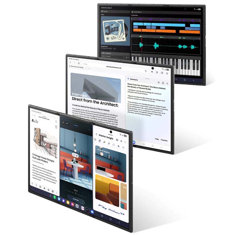 When fully unfolded, the **10-inch display** acts like three **6.5-inch screens**, allowing users to multitask effectively, whether they are drafting documents or streaming videos. The device also supports **Samsung DeX**, enabling a full desktop-like experience anywhere, further enhancing productivity.