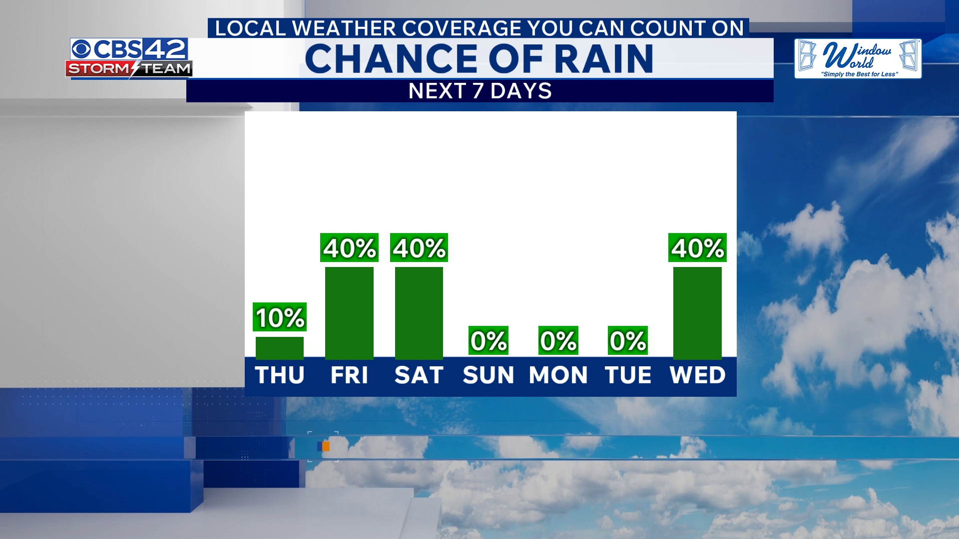 CBS 42 Weather Livestream Channel: “Tonight’s line of storms poses a Marginal Risk for large hail and damaging winds as the cold front and upper-level system traverse the area.”