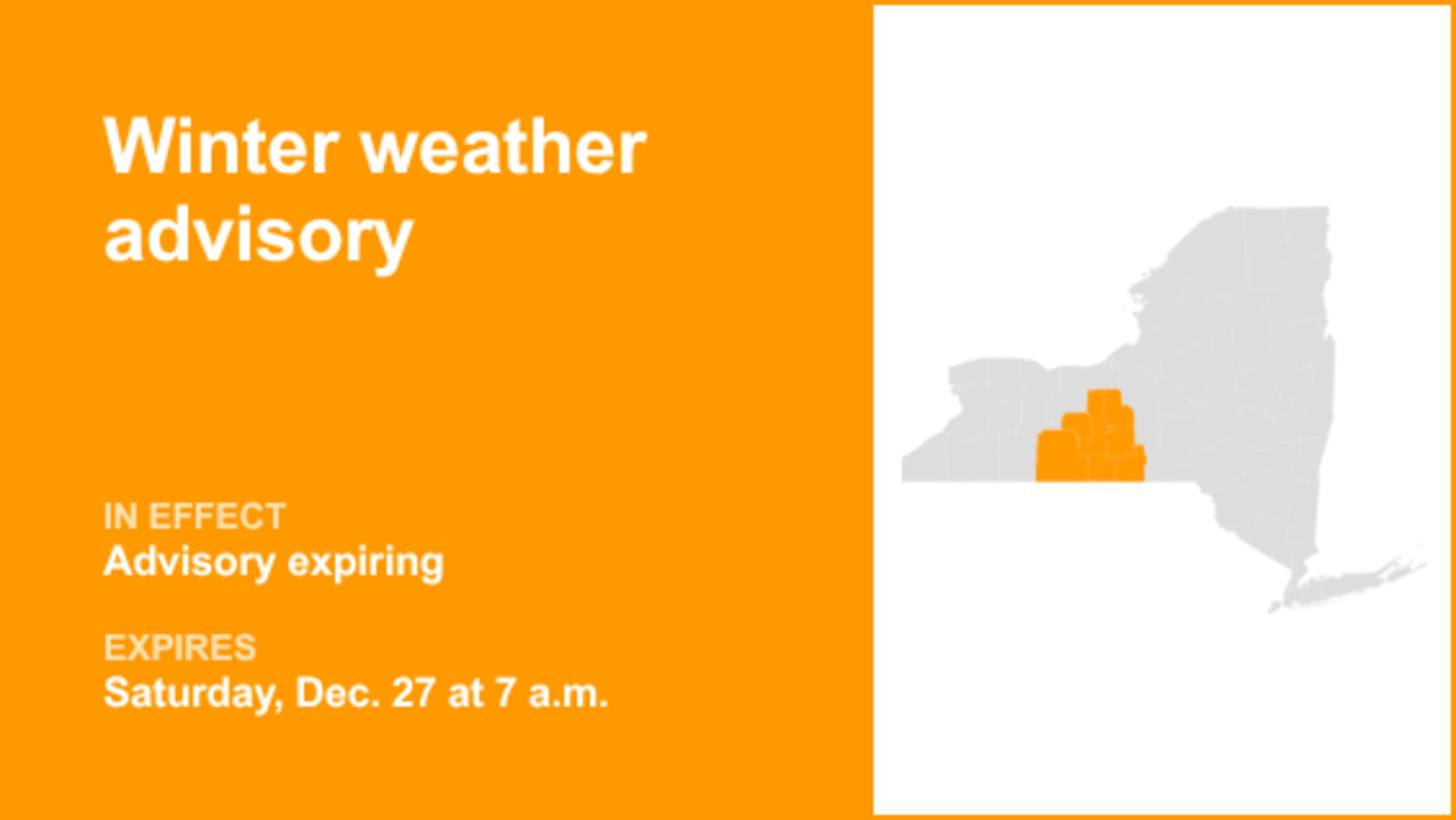 UPDATE: A winter weather advisory affecting several counties in New York is set to expire at 7 a.m. today. The advisory, which impacts Yates, Seneca, Cayuga, Steuben, Schuyler, Chemung, Tompkins, and Tioga counties, has raised urgent safety concerns as icy conditions often lead to treacherous roads.