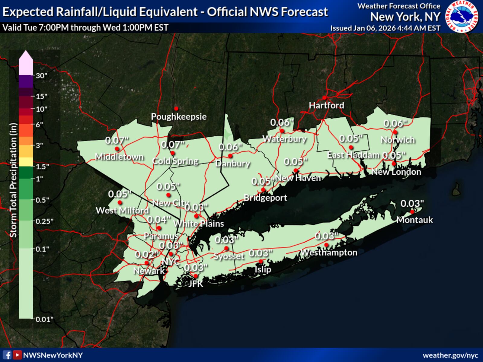 Starting this evening, temperatures in New York City are expected to remain above freezing, with lows ranging from the upper 30s to lower 40s. Light rain will begin shortly after sunset, with precipitation amounts staying under a tenth of an inch. This weather pattern is associated with a low-pressure system moving north of the region late tonight into early Wednesday.